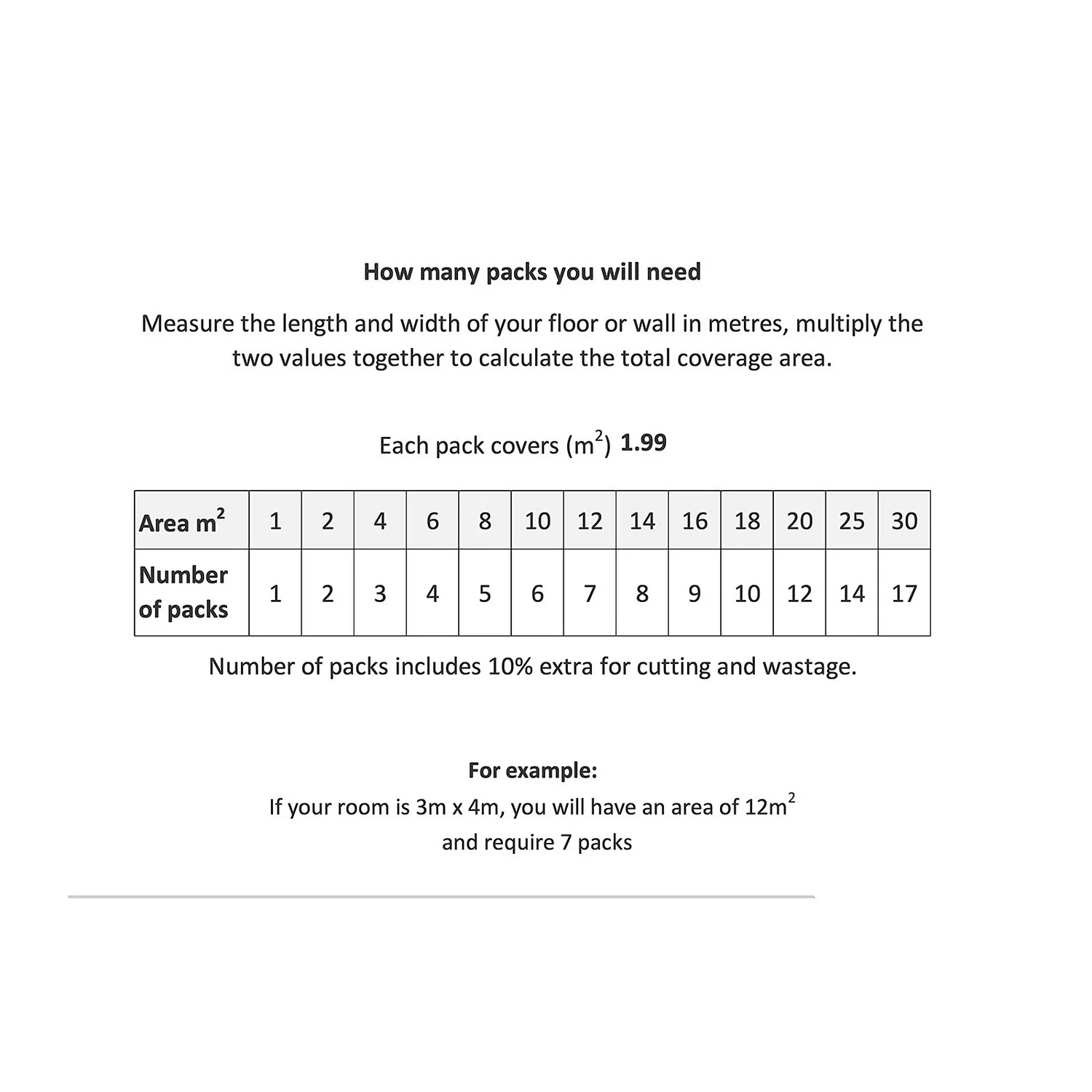 | Coverage Per Pack | 1.995m2 |