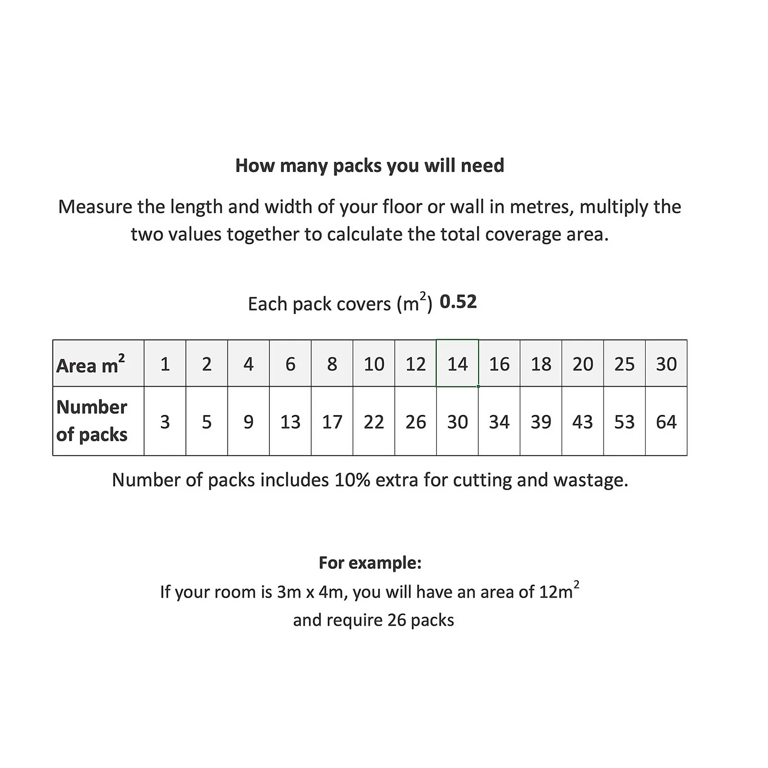 - Use as a splashback in bathrooms or kitchens, or create the wow factor with a feature or zoned area on either the wall or floor